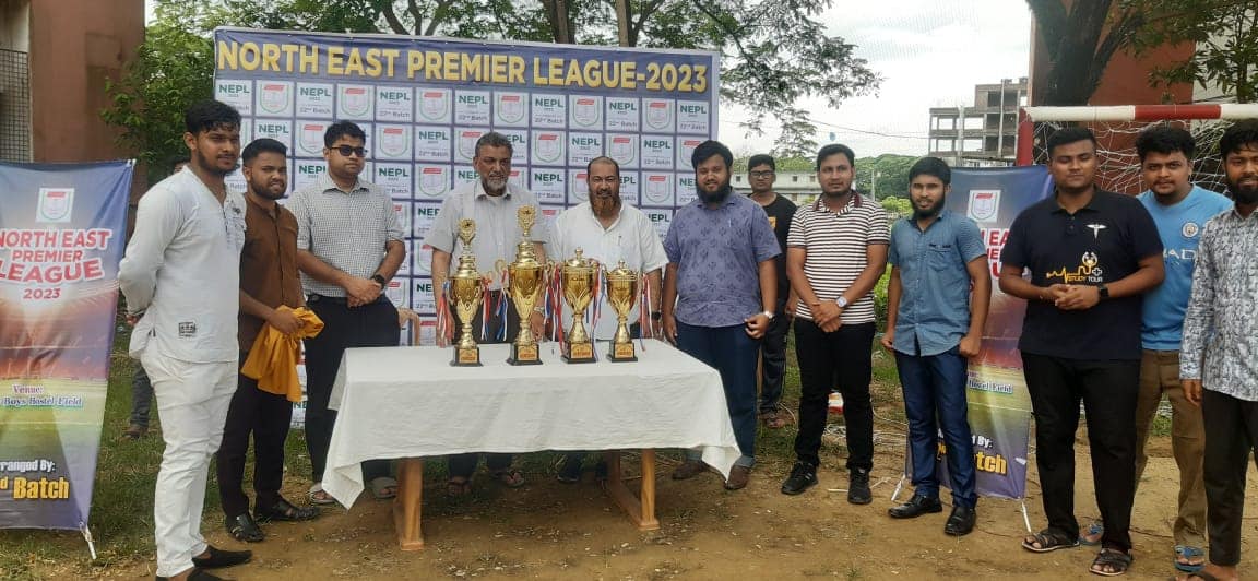 আজ ১০জুন ঐতিহ্যবাহী নর্থ ইষ্ট মেডিকেল কলেজ এর নর্থ ইষ্ট মেডিকেল কলেজ স্পোর্টস গ্রাউন্ডে দুপুর ২টায় এমবিবিএস ২২তম ব্যাচের আয়োজনে ফ্র্যান্ঞাইজি ভিত্তিক টুর্নামেন্ট (নর্থ ইষ্ট প্রিমিয়ার লিগ) ” ফুটবল ও ক্রিকেট” এর ট্রফি উন্মোচন পর্ব এবং উদ্বোধন অনুষ্ঠান অনুষ্ঠিত হয়।উক্ত,অনুষ্ঠানে উপস্থিত ছিলেন নর্থ ইষ্ট মেডিকেল কলেজ এর সম্মানিত অধ্যক্ষ অধ্যাপক ডাঃ শাহরিয়ার হোসেন চৌধুরী।উপস্থিত ছিলেন মাইক্রোবায়োলজি বিভাগের সহযোগী অধ্যাপক ডাঃফাহমি ইকবাল রাব্বী,গাইনী ও অবস বিভাগের রেজিস্ট্রার ও উপ পরিচালক ডাঃ মুনতাসীর আলম রাহিমি,কমিউনিটি মেডিসিনের লেকচারার ডাঃ এজাজ উদ্দিন আহমেদ সানী এবং ২২তম ব্যাচের (নর্থ ইষ্ট প্রিমিয়ার লিগ ) আয়োজক সহ অন্যান্য ছাত্র ছাত্রী বৃন্দ।