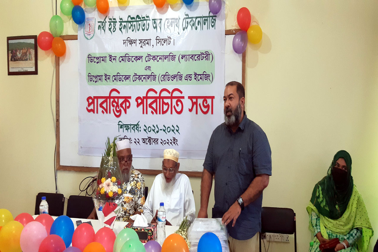 নর্থ ইষ্ট ইন্সটিউট অব হেলথ টেকনোলজী শিক্ষাবর্ষ:২০২১-২০২২ ইংএর প্রারম্ভিক পরিচিতি সভা অদ্য দুপুর ১২:00 টায় নর্থ ইষ্ট ক্যান্সার বিল্ডিং ৩য় তলায় অনুষ্ঠিত হয়।নর্থ ইষ্ট ইন্সটিউট অব হেলথ টেকনোলজী এর অধ্যক্ষ ডাঃ ইকবাল হোসেন চৌধুরীর সভাপতিত্বে উক্ত অনুষ্ঠানে প্রধান অতিথি হিসেবে নর্থ ইষ্ট মেডিকেল প্রাইভেট লিমিটেড এর চেয়ারম্যান, অধ্যাপক ডাঃমোহাম্মদ আফজাল মিয়া উপস্থিত ছিলেন।