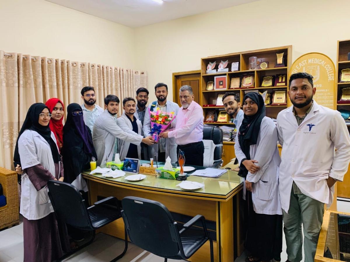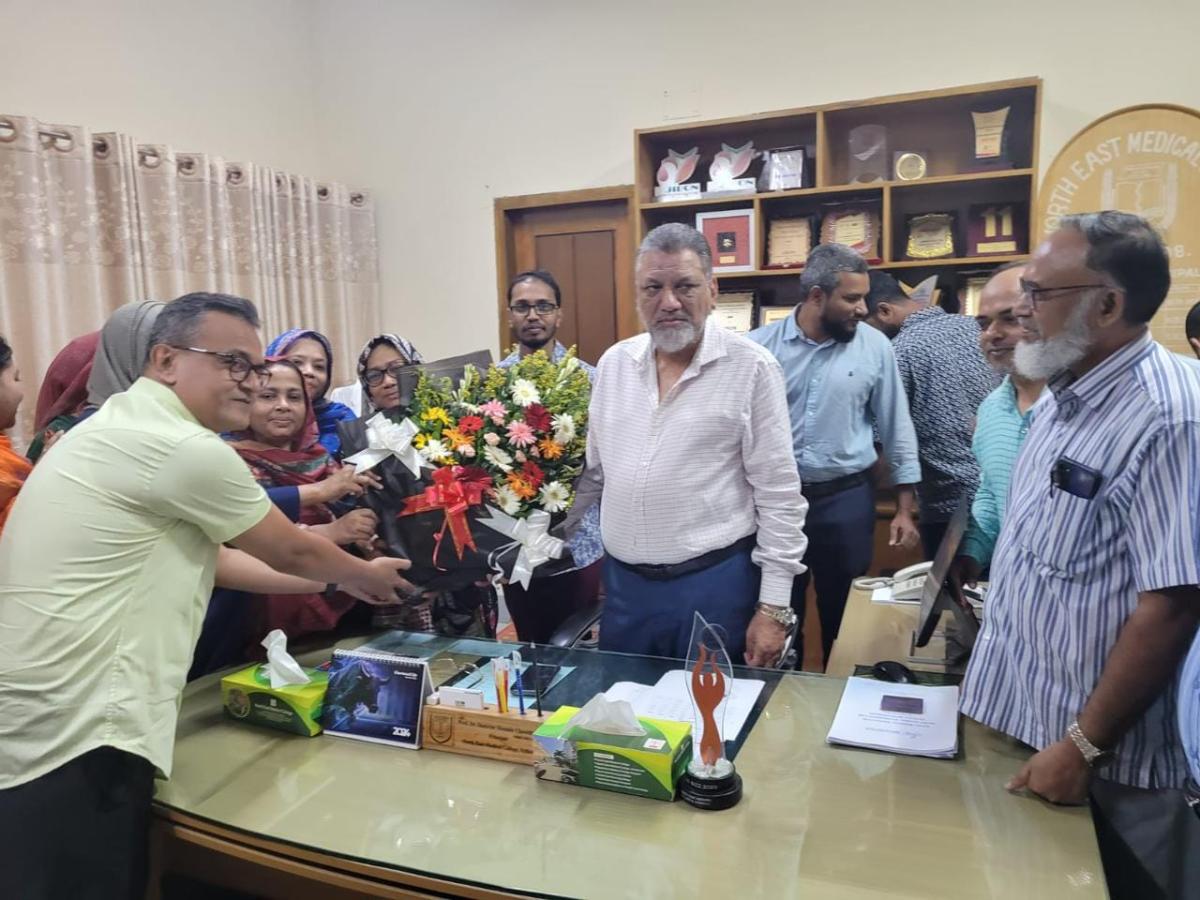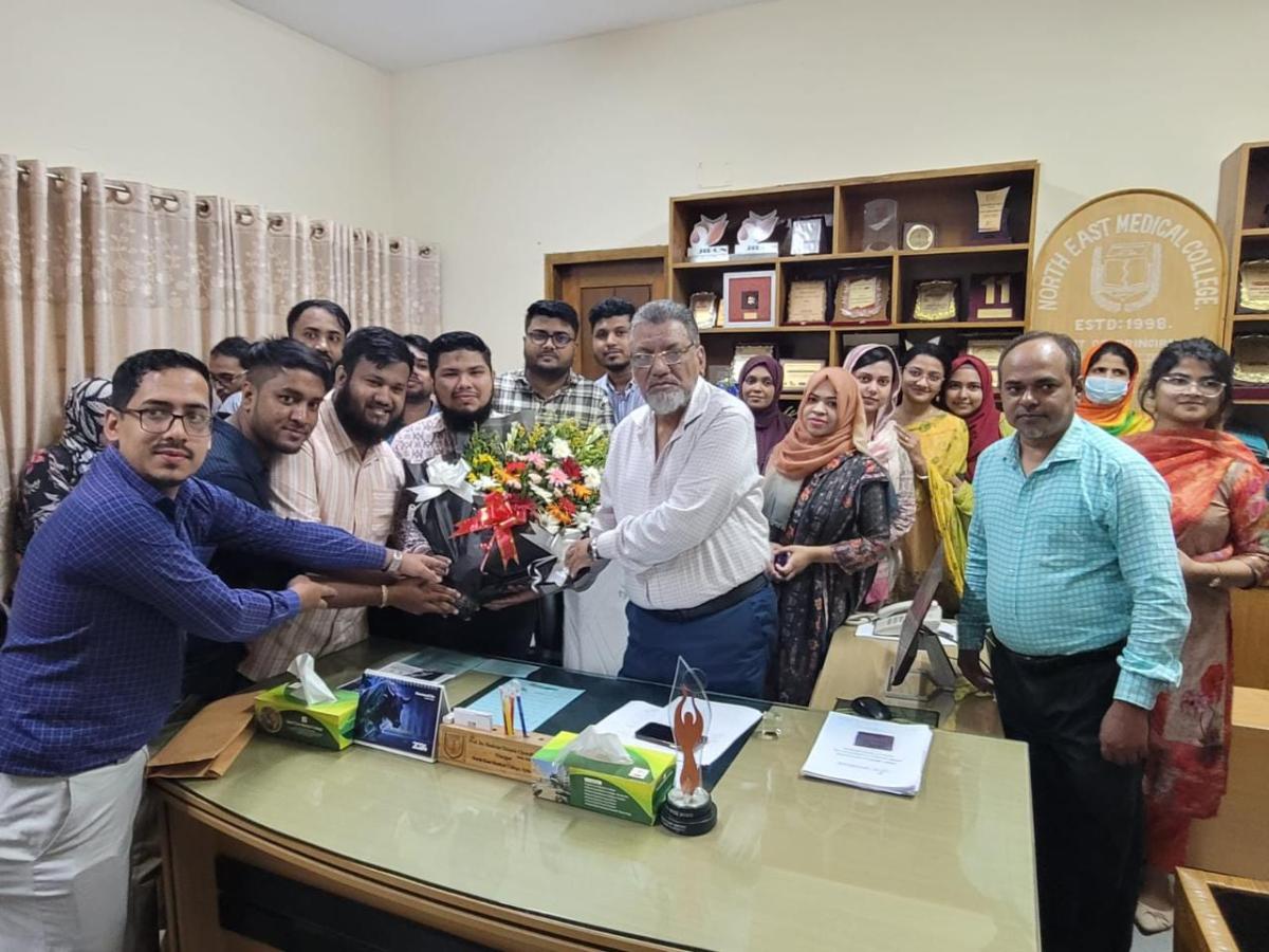 ০৫/১০/২৪ইং তারিখে নর্থ ইষ্ট মেডিকেল কলেজের গভর্নিং বডির নির্ধারিত সভায় নর্থ ইষ্ট মেডিকেল কলেজের সুযোগ্য অধ্যক্ষ অধ্যাপক ডা: শাহরিয়ার হোসেন চৌধুরীর দায়িত্ব পালনের মেয়াদ বৃদ্ধির সিদ্ধান্ত অনুমোদন কল্পে সিলেট মেডিকেল বিশ্ববিদ্যালয়ে পাঠানো হয়। সভা শেষে অন্যান্য সদস্যবৃন্দের পক্ষ থেকে নর্থ ইস্ট মেডিকেল কলেজের গভর্নিং বডির চেয়ারম্যান অধ্যাপক ডা: আফজাল মিয়া অধ্যক্ষ মহোদয়কে অভিনন্দন জানান। এই সিদ্ধান্তে উচ্ছ্বসিত শিক্ষার্থী, শিক্ষক- চিকিৎসকেরা অধ্যক্ষ মহোদয়কে ফুলেল শুভেচ্ছা জানান। এছাড়া শিক্ষার্থী, শিক্ষক- চিকিৎসকেরা কেক কেটে তাদের অধ্যক্ষকে স্বাগত জানান।