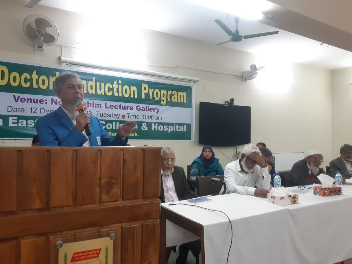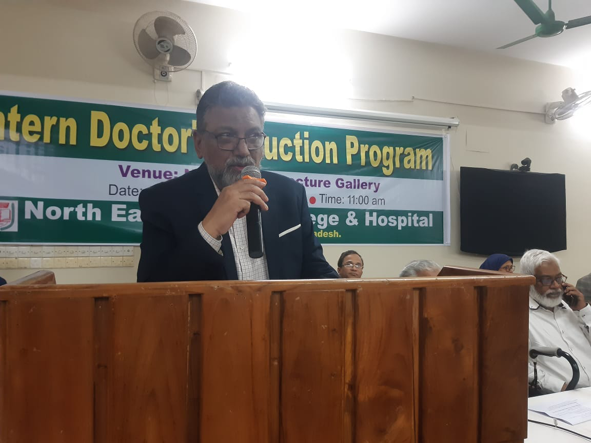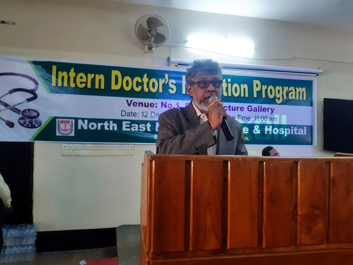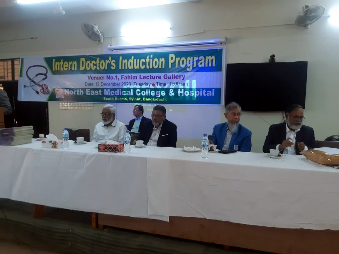 অদ্য ১২.১২ ২০২৩ ইং তারিখ রোজ মঙ্গলবার নর্থ ইষ্ট মেডিকেল কলেজ হাসপাতাল কর্তৃক আয়োজিত ইন্টার্ণ ইন্ডাকশন প্রোগ্রাম অনুষ্ঠিত হয়। এতে সভাপতিত্ব করেন হাসপাতাল পরিচালক অধ্যাপক ডাঃ মোঃ আফজল মিয়া। সভার শুরুতেই পবিত্র কুরআন থেকে তেলাওয়াত করা হয়। স্বাগত বক্তব্য প্রদান এবং নতুন ইন্টার্ণ ডাক্তারদের পরিচয় করিয়ে দেন নেপ্রোলজি বিভাগের বিভাগীয় প্রধান ও নর্থইস্ট মেডিকেল প্রাঃ লিঃ এর এক্সিকিউটিভ ডাইরেক্টর অধ্যাপক ডাঃ মোঃ নাজমুল ইসলাম। সভায় পুরাতন ইন্টার্ণ ডক্টরদের মধ্য থেকে বক্তব্য প্রদান করেন ডাঃ বিজিত তালুকদার এবং নতুন ইন্টার্ণ ডক্টরদের মধ্য থেকে ডাঃ তৌহিদ রহমান ও ডাঃ রেশমি ইয়াদব বক্তব্য প্রদান করেন। অনুষ্ঠান সঞ্চালনায় ছিলেন ডাঃ তাহের উদ্দিন। সভায় রেডিওলজি এবং ইমেজিং সম্পর্কে বক্তব্য প্রদান করেন ডাঃ মোঃ সাইফুল ইসলাম, ল্যাবরেটরীর সার্ভিস সম্পর্কে আলোচনা করেন অধ্যাপক ডাঃ মোঃ সাব্বির হোসেন, কোড অফ কন্ডাক্ট, রুলস, রেজুলেশন, ইন্টার্ণ ডাক্তারদের ছুটি সহ অন্যান্য বিষয় নিয়ে আলোচনা করেন হাসপাতালের উপপরিচালক অধ্যাপক ডাঃ মোহাম্মদ জসিম উদ্দিন, মেডিকেল ইথিকসের উপর আলোচনা করেন অধ্যাপক ডাঃ আলমগীর আদিল সামদানী, রোগী এবং রোগীর এটেন্ডেন্টদের সাথে ডাক্তারদের ব্যবহার কি রকম হওয়া উচিত তা নিয়ে আলোচনা করেন অধ্যাপক ডাঃ নাহিদ ইলোরা, আমাদের হাসপাতালের সার্ভিস এর সাথে অন্যান্য হাসপাতালের সার্ভিসের তুলনামূলক পর্যালোচনা সহ অন্যান্য হাসপাতালের সাথে সম্পর্ক নিয়ে আলোচনা করেন কলেজের উপাধ্যক্ষ ও মেডিসিন বিভাগের বিভাগীয় প্রধান অধ্যাপক ডাঃ এ এফ এম নাজমুল ইসলাম, কমিউনিটি সার্ভে এবং ডাক্তারদের সাথে কমিউনিটির সম্পর্ক নিয়ে আলোচনা করেন অধ্যাপক ডাঃ আব্দুল খালিক বড় ভূঁইয়া। হাসপাতালের অর্গানোগ্রাম এবং হাসপাতাল স্টাফদের ক্যাটাগরিজ নিয়ে আলোচনা করেন নর্থ ইস্ট মেডিকেল প্রাঃ লিঃ এর চেয়ারম্যান অধ্যাপক ডাঃ সৈয়দ মূসা এম এ কাইয়ুম, ইন্টার্ন ডাক্তারদের জেনেভা ডিক্লারেশন অনুযায়ী শপথ বাক্য পাঠ করান কলেজের অধ্যক্ষ ও নর্থ ইস্ট মেডিকেল প্রাঃ লিঃ এর ব্যবস্থাপনা পরিচালক অধ্যাপক ডাঃ শাহরিয়ার হোসেন চৌধুরী এবং একই সাথে শপথ বাক্যগুলি ইন্টার্ন ডাক্তারদের মেনে চলার নির্দেশ প্রদান করেন। পরিশেষে সভার সভাপতি অধ্যাপক মোঃ আফজল মিয়া লগবুক এর নিয়ম অনুযায়ী ইন্টার্ণ ডাক্তারগণকে হাসপাতালের ডিউটি পালন করতে নির্দেশ প্রদান করেন। এছাড়া একজন ভালো ডাক্তার হয়ে মা-বাবার আশাপুরনের আশাবাদ ব্যক্ত করে সভার সমাপ্তি ঘোষণা করেন।