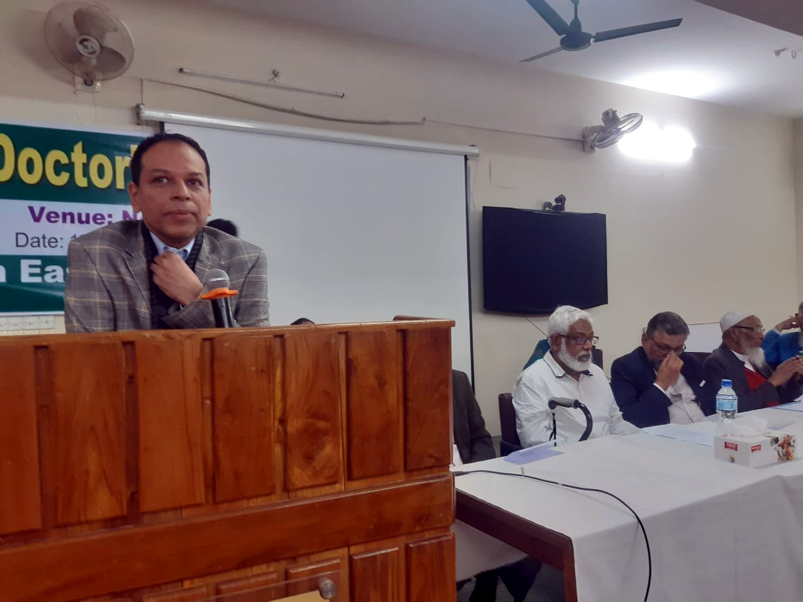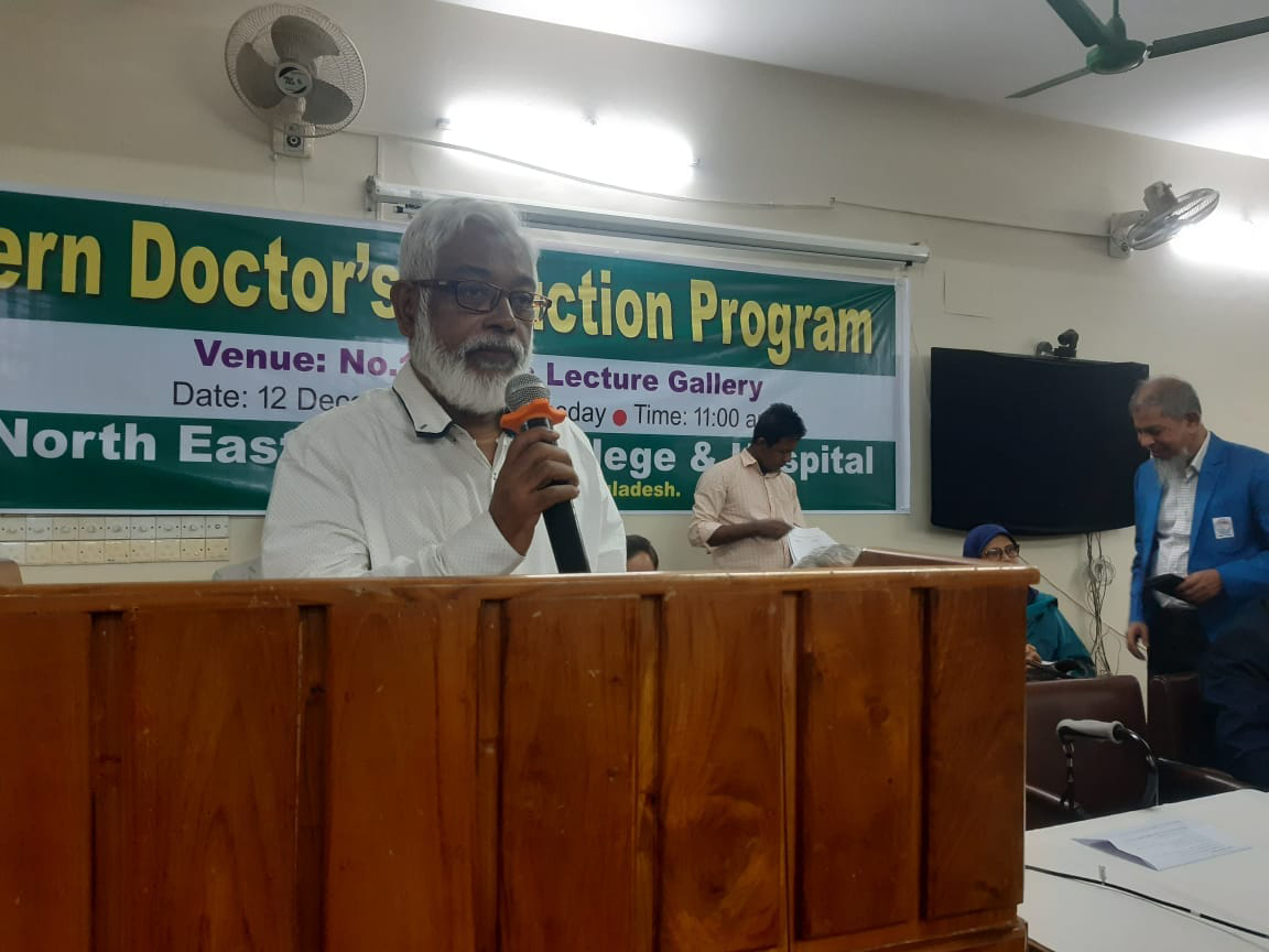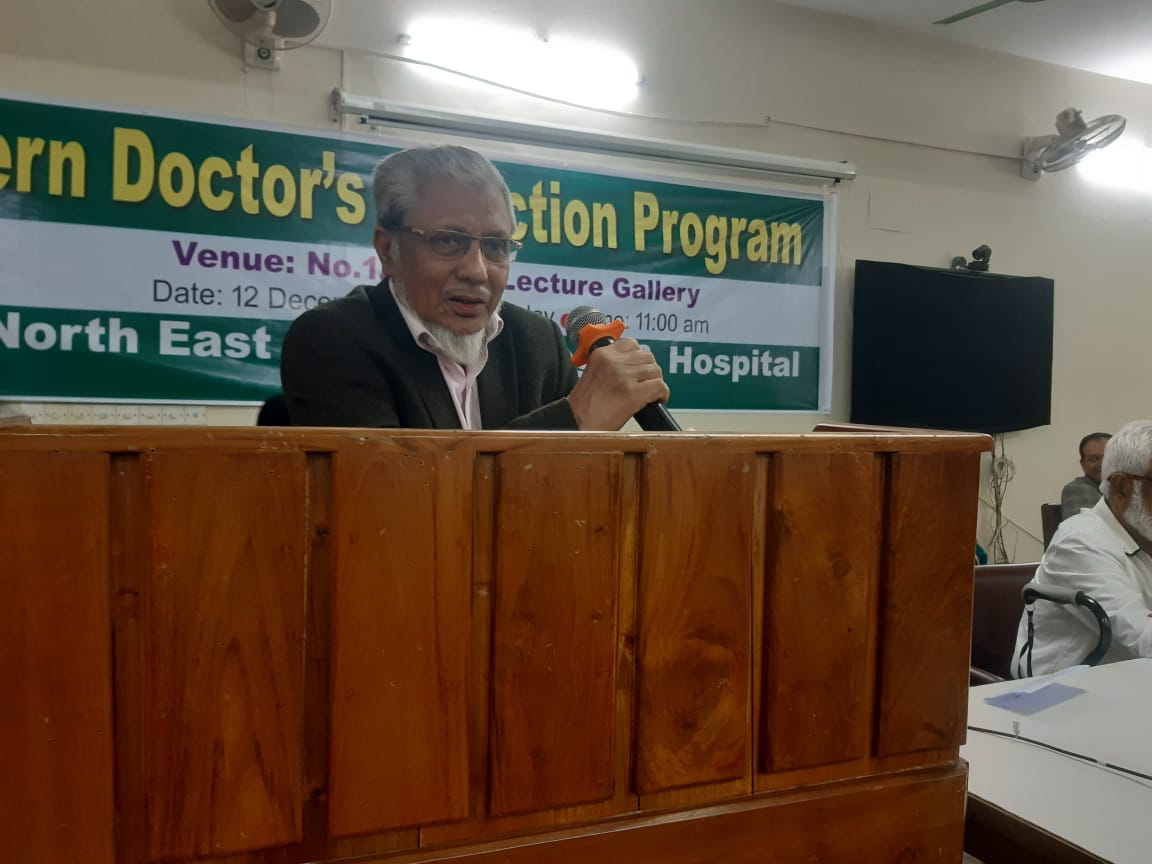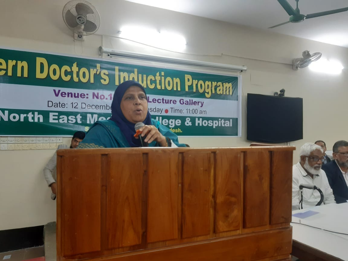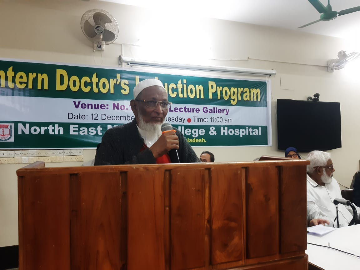 অদ্য ১২.১২ ২০২৩ ইং তারিখ রোজ মঙ্গলবার নর্থ ইষ্ট মেডিকেল কলেজ হাসপাতাল কর্তৃক আয়োজিত ইন্টার্ণ ইন্ডাকশন প্রোগ্রাম অনুষ্ঠিত হয়। এতে সভাপতিত্ব করেন হাসপাতাল পরিচালক অধ্যাপক ডাঃ মোঃ আফজল মিয়া। সভার শুরুতেই পবিত্র কুরআন থেকে তেলাওয়াত করা হয়। স্বাগত বক্তব্য প্রদান এবং নতুন ইন্টার্ণ ডাক্তারদের পরিচয় করিয়ে দেন নেপ্রোলজি বিভাগের বিভাগীয় প্রধান ও নর্থইস্ট মেডিকেল প্রাঃ লিঃ এর এক্সিকিউটিভ ডাইরেক্টর অধ্যাপক ডাঃ মোঃ নাজমুল ইসলাম। সভায় পুরাতন ইন্টার্ণ ডক্টরদের মধ্য থেকে বক্তব্য প্রদান করেন ডাঃ বিজিত তালুকদার এবং নতুন ইন্টার্ণ ডক্টরদের মধ্য থেকে ডাঃ তৌহিদ রহমান ও ডাঃ রেশমি ইয়াদব বক্তব্য প্রদান করেন। অনুষ্ঠান সঞ্চালনায় ছিলেন ডাঃ তাহের উদ্দিন। সভায় রেডিওলজি এবং ইমেজিং সম্পর্কে বক্তব্য প্রদান করেন ডাঃ মোঃ সাইফুল ইসলাম, ল্যাবরেটরীর সার্ভিস সম্পর্কে আলোচনা করেন অধ্যাপক ডাঃ মোঃ সাব্বির হোসেন, কোড অফ কন্ডাক্ট, রুলস, রেজুলেশন, ইন্টার্ণ ডাক্তারদের ছুটি সহ অন্যান্য বিষয় নিয়ে আলোচনা করেন হাসপাতালের উপপরিচালক অধ্যাপক ডাঃ মোহাম্মদ জসিম উদ্দিন, মেডিকেল ইথিকসের উপর আলোচনা করেন অধ্যাপক ডাঃ আলমগীর আদিল সামদানী, রোগী এবং রোগীর এটেন্ডেন্টদের সাথে ডাক্তারদের ব্যবহার কি রকম হওয়া উচিত তা নিয়ে আলোচনা করেন অধ্যাপক ডাঃ নাহিদ ইলোরা, আমাদের হাসপাতালের সার্ভিস এর সাথে অন্যান্য হাসপাতালের সার্ভিসের তুলনামূলক পর্যালোচনা সহ অন্যান্য হাসপাতালের সাথে সম্পর্ক নিয়ে আলোচনা করেন কলেজের উপাধ্যক্ষ ও মেডিসিন বিভাগের বিভাগীয় প্রধান অধ্যাপক ডাঃ এ এফ এম নাজমুল ইসলাম, কমিউনিটি সার্ভে এবং ডাক্তারদের সাথে কমিউনিটির সম্পর্ক নিয়ে আলোচনা করেন অধ্যাপক ডাঃ আব্দুল খালিক বড় ভূঁইয়া। হাসপাতালের অর্গানোগ্রাম এবং হাসপাতাল স্টাফদের ক্যাটাগরিজ নিয়ে আলোচনা করেন নর্থ ইস্ট মেডিকেল প্রাঃ লিঃ এর চেয়ারম্যান অধ্যাপক ডাঃ সৈয়দ মূসা এম এ কাইয়ুম, ইন্টার্ন ডাক্তারদের জেনেভা ডিক্লারেশন অনুযায়ী শপথ বাক্য পাঠ করান কলেজের অধ্যক্ষ ও নর্থ ইস্ট মেডিকেল প্রাঃ লিঃ এর ব্যবস্থাপনা পরিচালক অধ্যাপক ডাঃ শাহরিয়ার হোসেন চৌধুরী এবং একই সাথে শপথ বাক্যগুলি ইন্টার্ন ডাক্তারদের মেনে চলার নির্দেশ প্রদান করেন। পরিশেষে সভার সভাপতি অধ্যাপক মোঃ আফজল মিয়া লগবুক এর নিয়ম অনুযায়ী ইন্টার্ণ ডাক্তারগণকে হাসপাতালের ডিউটি পালন করতে নির্দেশ প্রদান করেন। এছাড়া একজন ভালো ডাক্তার হয়ে মা-বাবার আশাপুরনের আশাবাদ ব্যক্ত করে সভার সমাপ্তি ঘোষণা করেন।