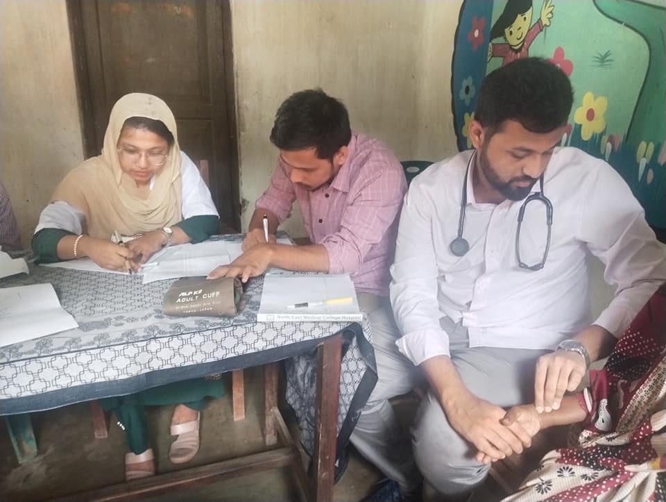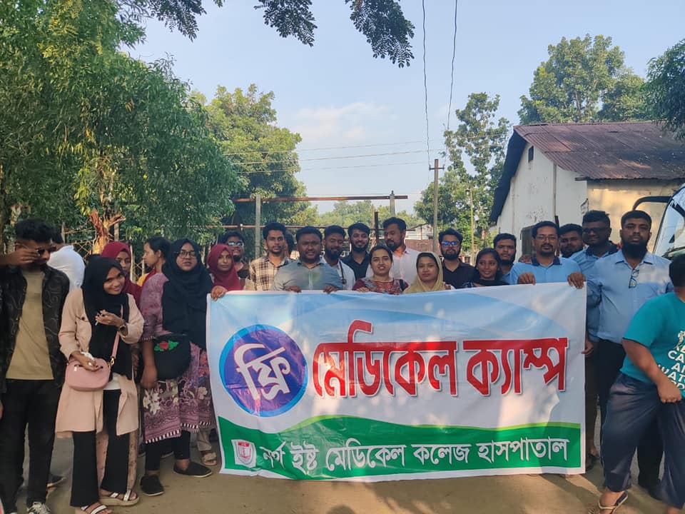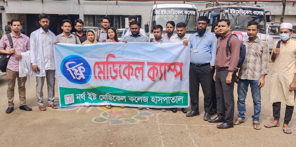 নর্থ ইষ্ট মেডিকেল কলেজ হাসপাতাল এর উদ্যোগে দেশব‍্যাপি ঔষধ ও নগদ অর্থসহ ফ্রি মেডিকেল ক‍্যাম্প এর আয়োজন ।