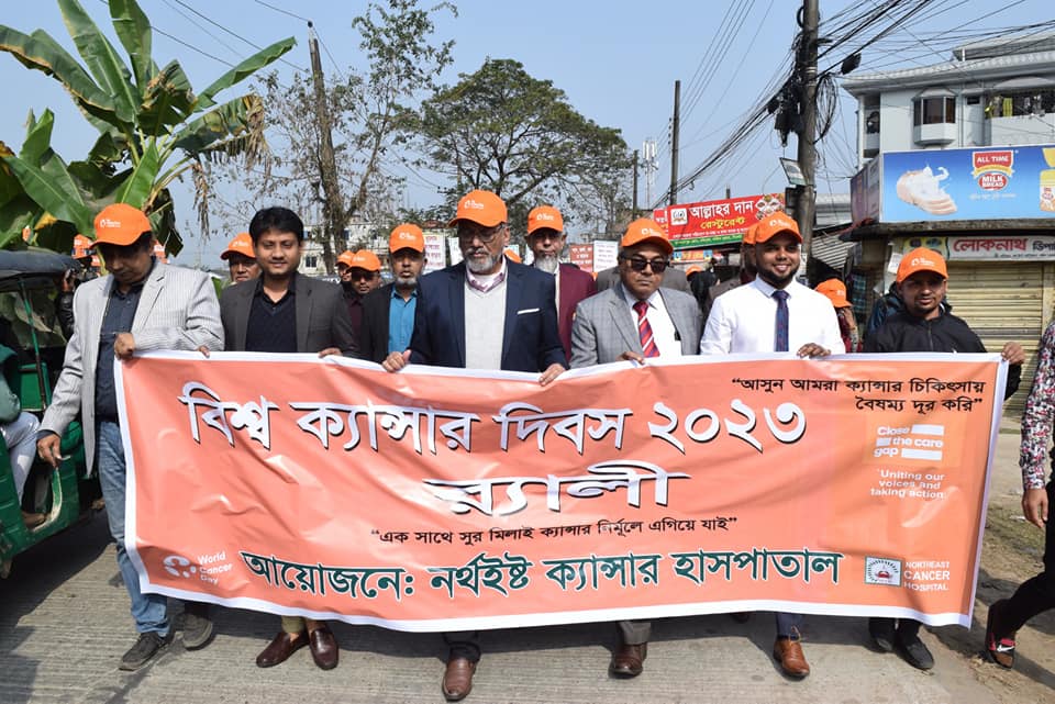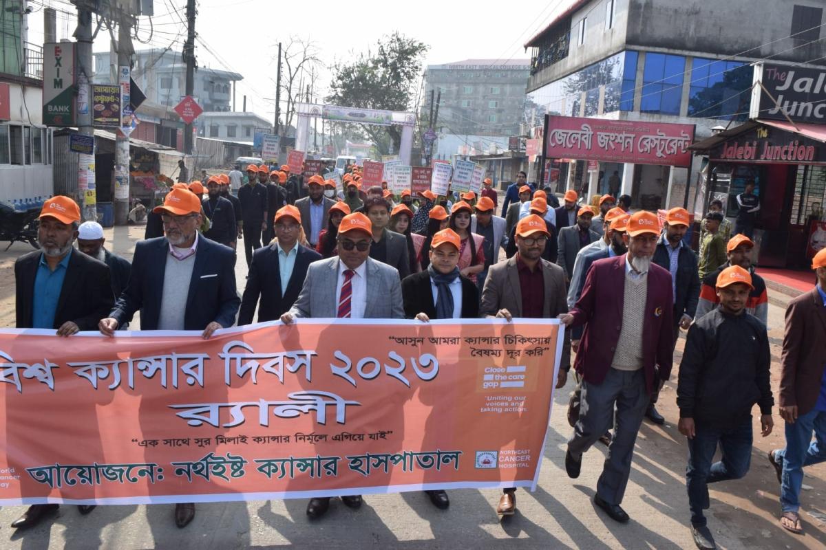 বিশ্ব ক্যান্সার দিবস উপলক্ষ্যে সকাল ১০ টায় হাসপাতাল প্রাঙ্গন থেকে একটি বিশাল র্যালী বের করা হয়। র্যালিটি চন্ডিপুল এলাকা ঘুরে হাসপাতালে এসে আলোচনা সভায় মিলিত হয়। নর্থ ইষ্ট ক্যান্সার হাসপাতাল থেকে সেবা গ্রহণকারী সহস্রাধিক রোগী এবং সিলেটের বিশিষ্টজনদের নিয়ে আয়োজিত এ সেমিনারে সভাপতিত্ব করেন নর্থ ইষ্ট মেডিকেল কলেজের অধ্যক্ষ ও নর্থ ইষ্ট প্রাইভেট লিমিটেডের ব্যাবস্থাপনা পরিচালক অধ্যাপক ডাক্তার শাহরিয়ার হোসেন চৌধুরী। প্রধান অতিথির বক্তব্য রাখেন নর্থ ইষ্ট প্রাইভেট লিমিটেডের গভর্নিং বডির চেয়ারম্যান অধ্যাপক ডাঃ মোহাম্মদ আফজল মিয়া। সেমিনারে অংশ নিয়ে বিশিষ্টজনেরা আরো বলেন, বিশ্বে ২০৫০ সাল নাগাদ ক্যান্সার রোগীর সংখ্যা দ্বিগুণ হওয়ার সম্ভাবনা রয়েছে। এজন্য এই চিকিৎসা ব্যবস্থায় আরো কিছু পরিবর্তন নিয়ে আসা দরকার। ক্যান্সার চিকিৎসা অত্যন্ত ব্যায়বহুল। তাই এই চিকিৎসার জন্য সাপোর্ট গ্রুপ তৈরি করা দরকার। বিশ্বের বিভিন্ন দেশে এরকম সাপোর্ট গ্রুপ রয়েছে। দেশের সামাজিক সংগঠন ও উন্নয়ন সংস্থাগুলোকেও এ ব্যাপারে আন্দোলন গড়ে তোলা দরকার। বিত্তশালীদের দিয়ে সাপোর্ট গ্রুপ তৈরি করে রোগীদের পাশে দাঁড় করাতে হবে। সভাপতির বক্তব্যে অধ্যাপক ডাক্তার শাহরিয়ার হোসেন চৌধুরী বলেন, সিলেটবাসীর সাপোর্ঠ পেলে নর্থ ইষ্ট ক্যান্সার হাসপাতালকে আমরা বিশ্বমানের একটি পূর্নাঙ্গ হাসপাতালে রুপ দিতে পারবো। ইতিমধ্যে সারা দেশ থেকে এমনকি প্রতিবেশী দেশগুলো থেকেও রোগীরা এখানে চিকিৎসা নিতে আসছেন। অনেক অভিজ্ঞ চিকিৎসক আমাদের হাসপাতালকে রেফার করছেন। এখান থেকে চিকিৎসা গ্রহণ করে সুস্থ হয়েছেন অসংখ্য মানুষ। ভবিষ্যতেও এই হাসপাতাল উজ্জল দৃষ্টান্ত স্থাপন করবে বলে আশাবাদ ব্যাক্ত করেন তিনি।