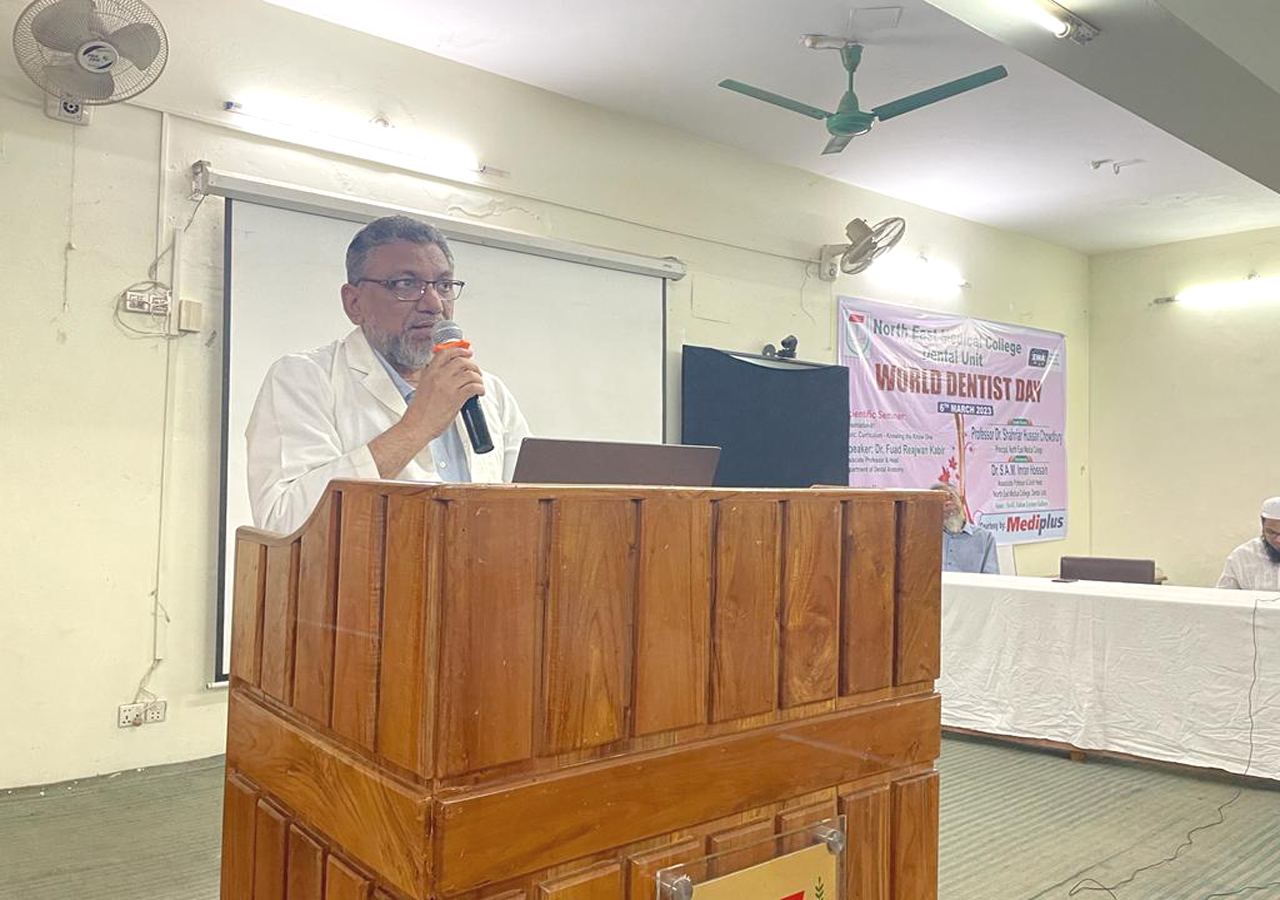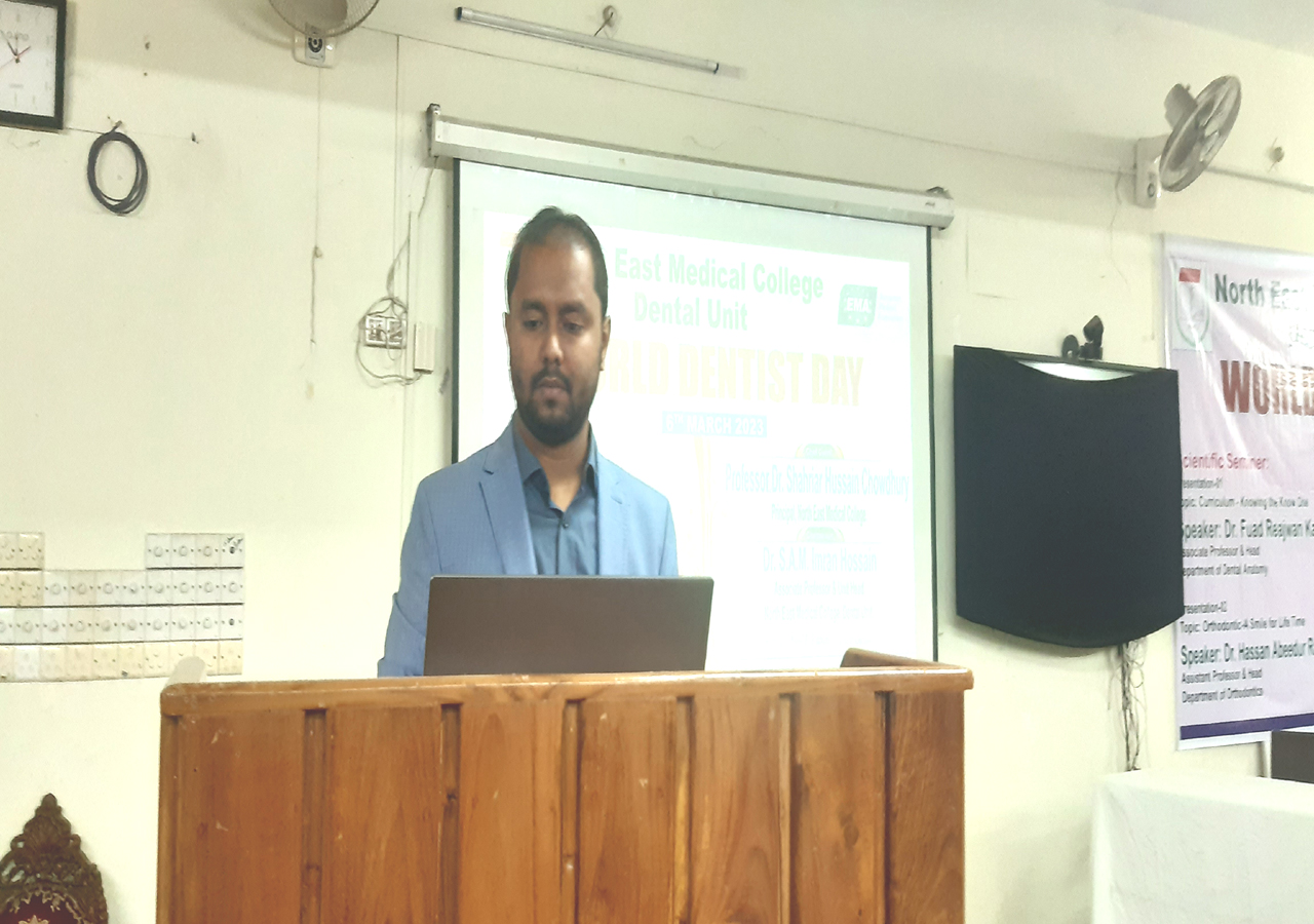 ২য় সেশনে সেমিনার উপস্থাপন করেন নর্থ ইষ্ট মেডিকেল কলেজ ডেন্টাল ইউনিটের অর্থোডন্টিকস বিভাগের বিভাগীয় প্রধান ডাঃ হাসান আবীদুর রহমান।