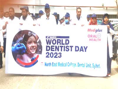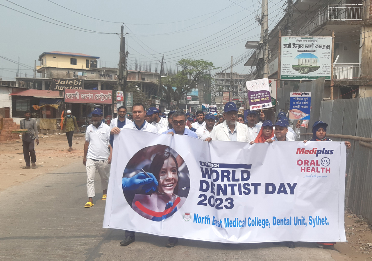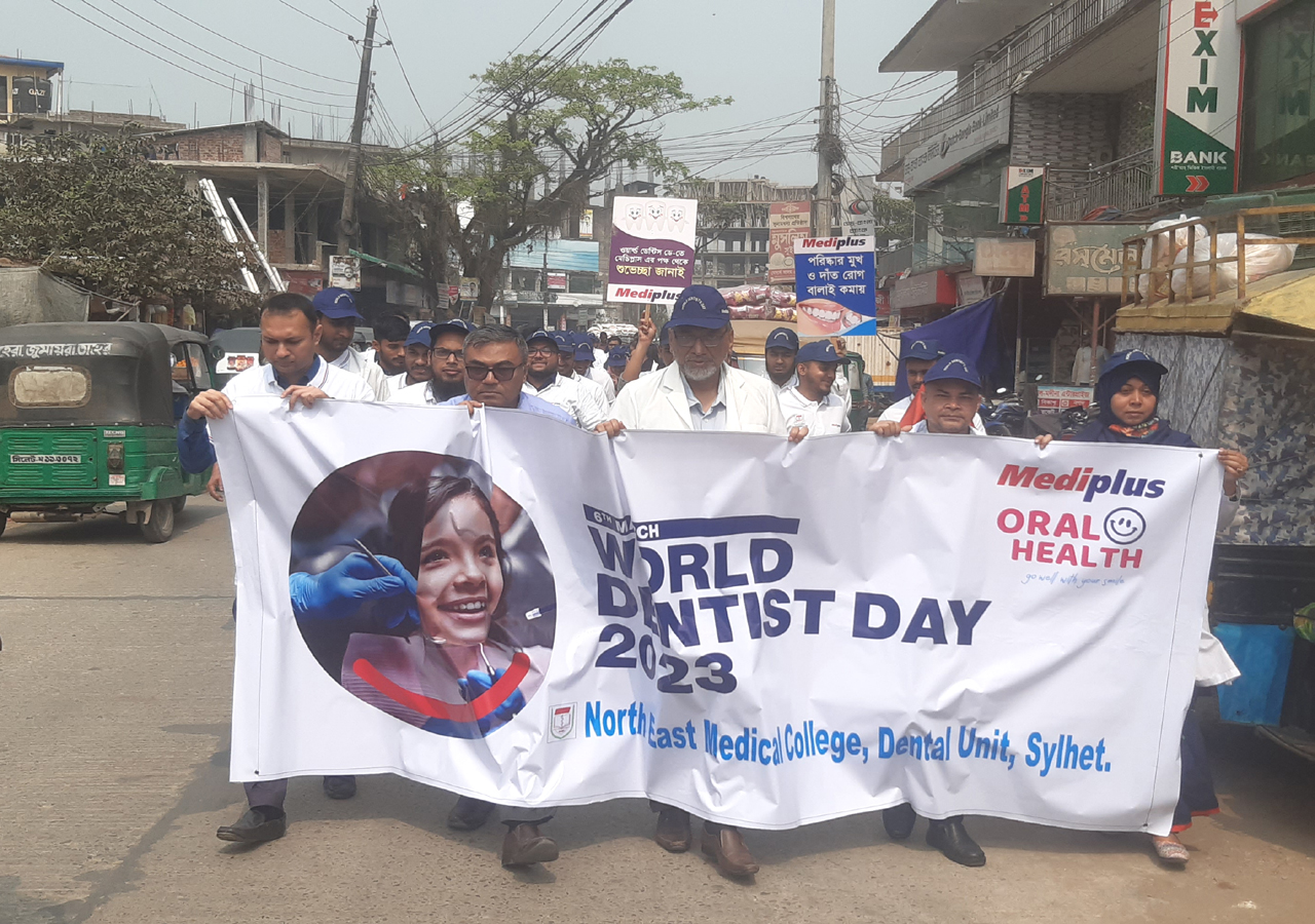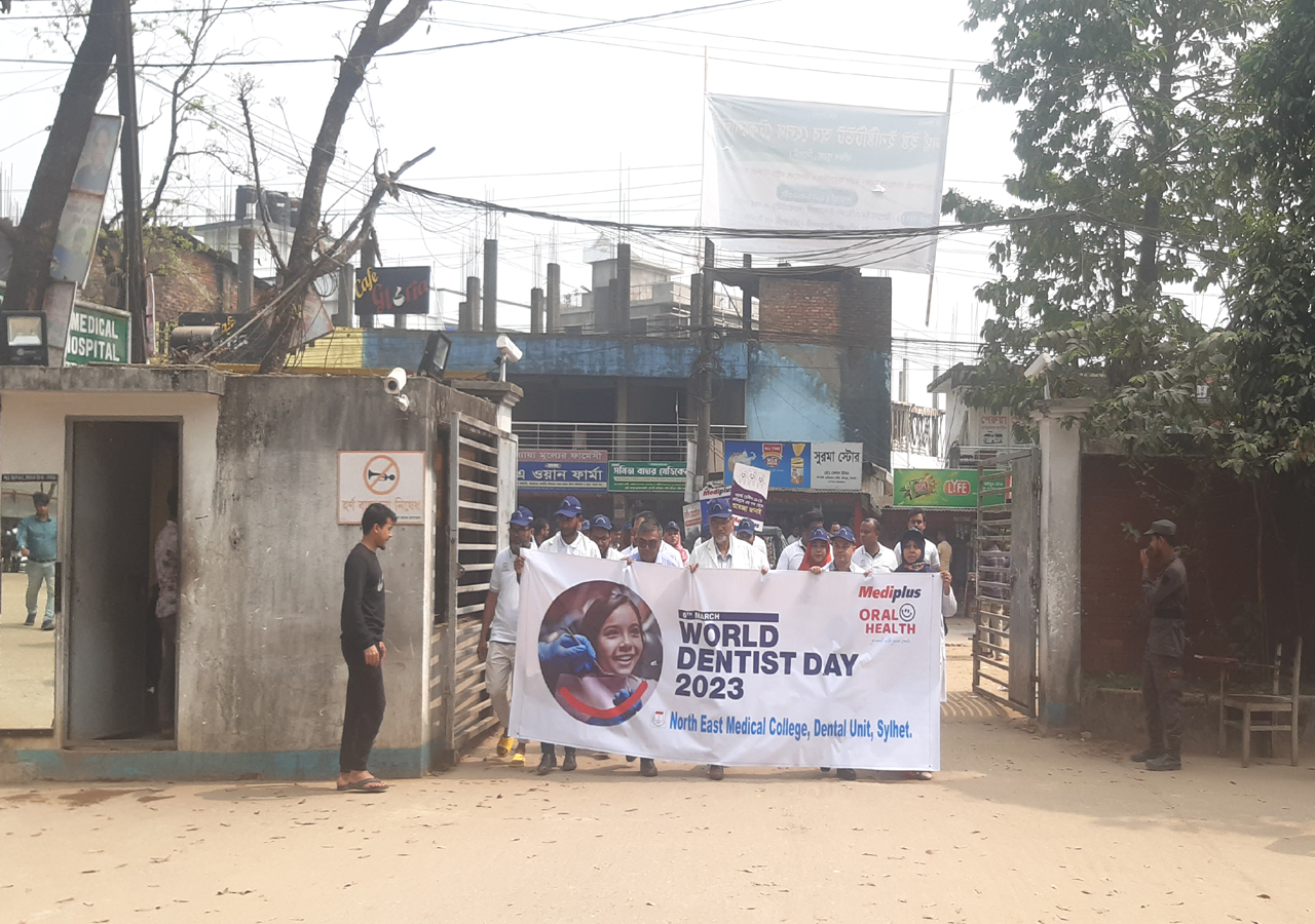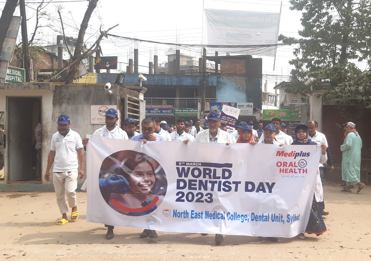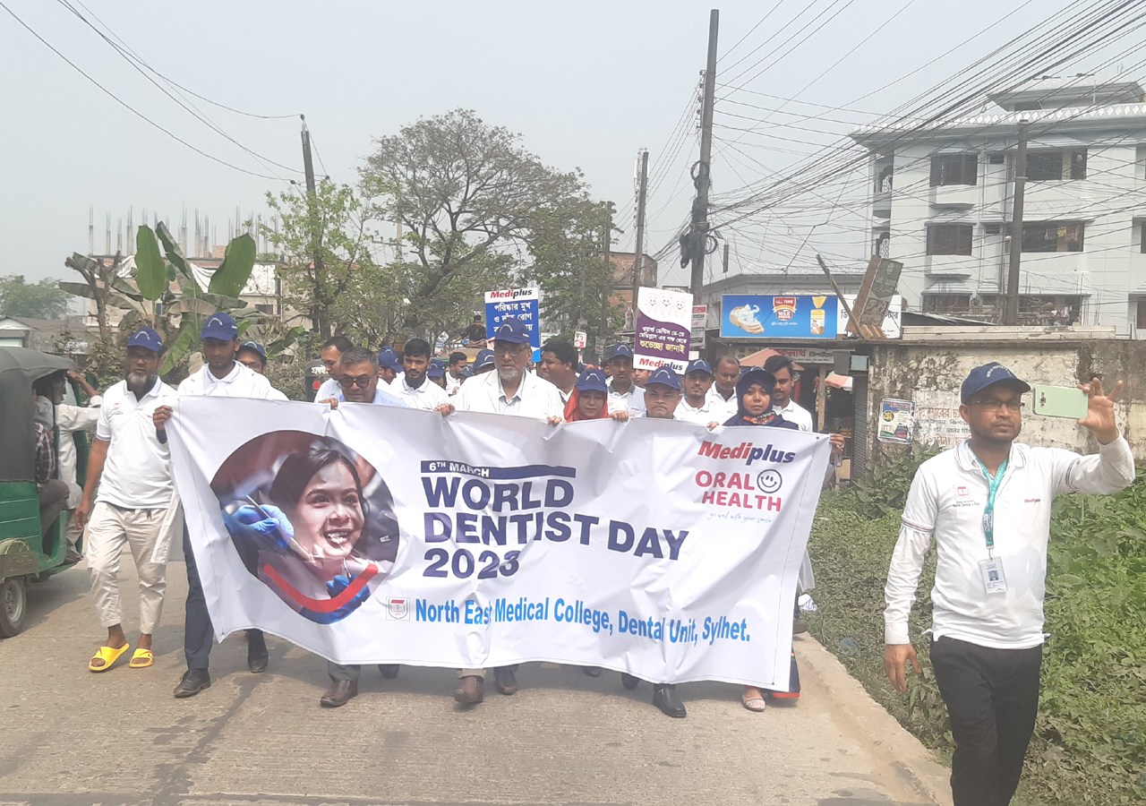 অদ্য ৬মার্চ ২০২৩ইং রোজ সোমবার ওয়ার্ল্ড ডেন্টিস্ট ডে উপলক্ষে নর্থ ইষ্ট মেডিকেল কলেজ ডেন্টাল ইউনিট এর ব্যবস্থাপনায় এক বর্নাঢ্য র্যালী, সায়েন্টেফিক সেমিনার ও আলোচনা সভার আয়োজন করা হয়।
