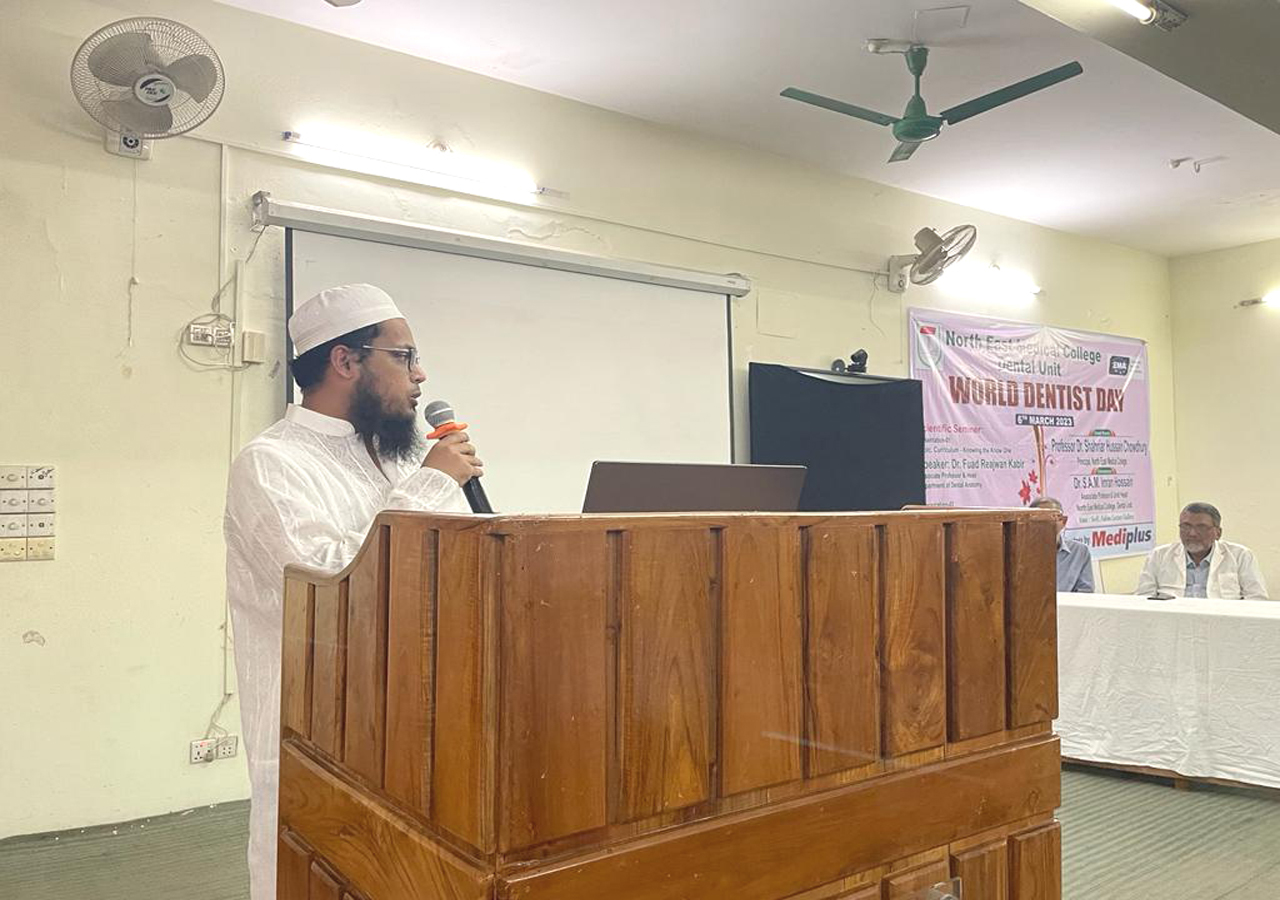 ১ম সেশনে সেমিনার উপস্থাপন করেন নর্থ ইষ্ট মেডিকেল কলেজ ডেন্টাল ইউনিটের ডেন্টাল এনাটমী বিভাগের বিভাগীয় প্রধান ডাঃ ফুয়াদ রেজোয়ান কবির।