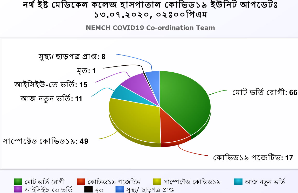 Total Patient Admitted: 66 Positive: 17 Suspected: 49 New Admission: 11 Total Dispatch/Discharged: 8 Death: 1 ICU: 15
