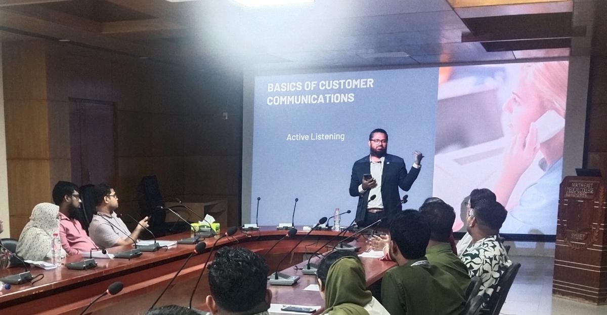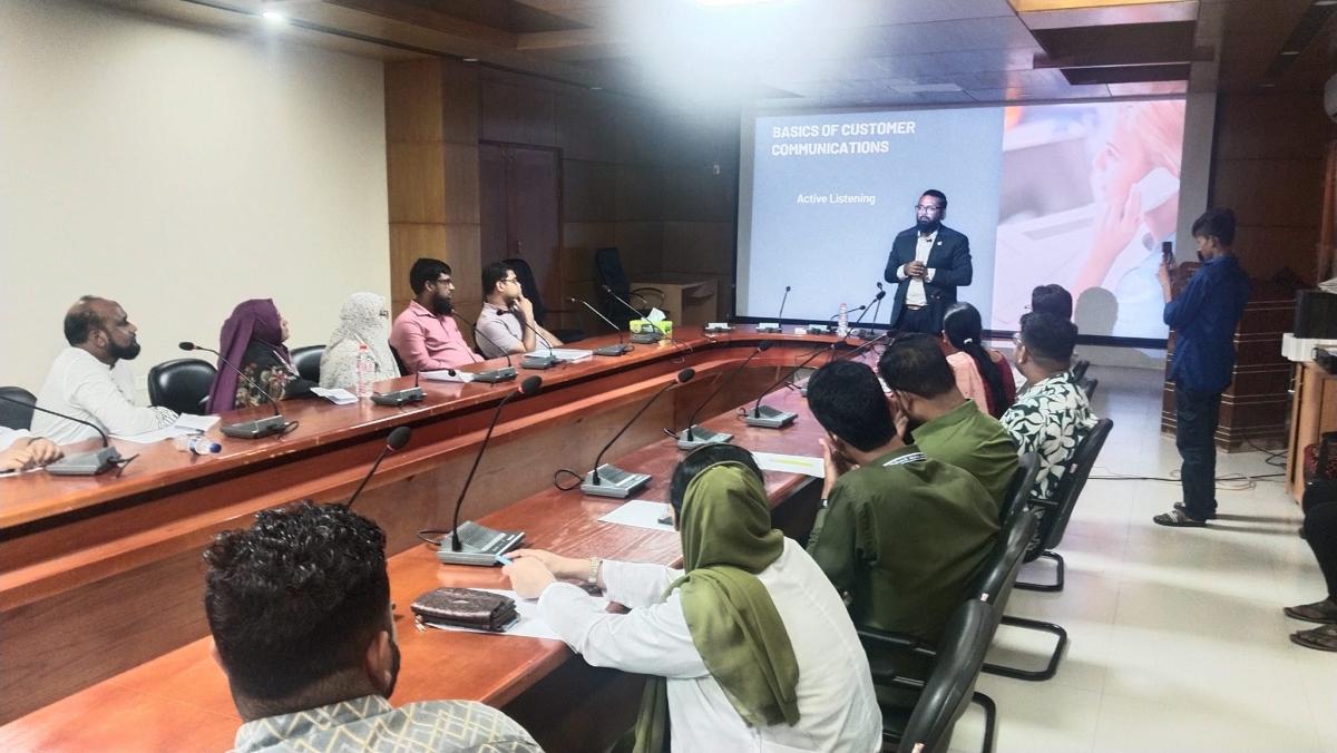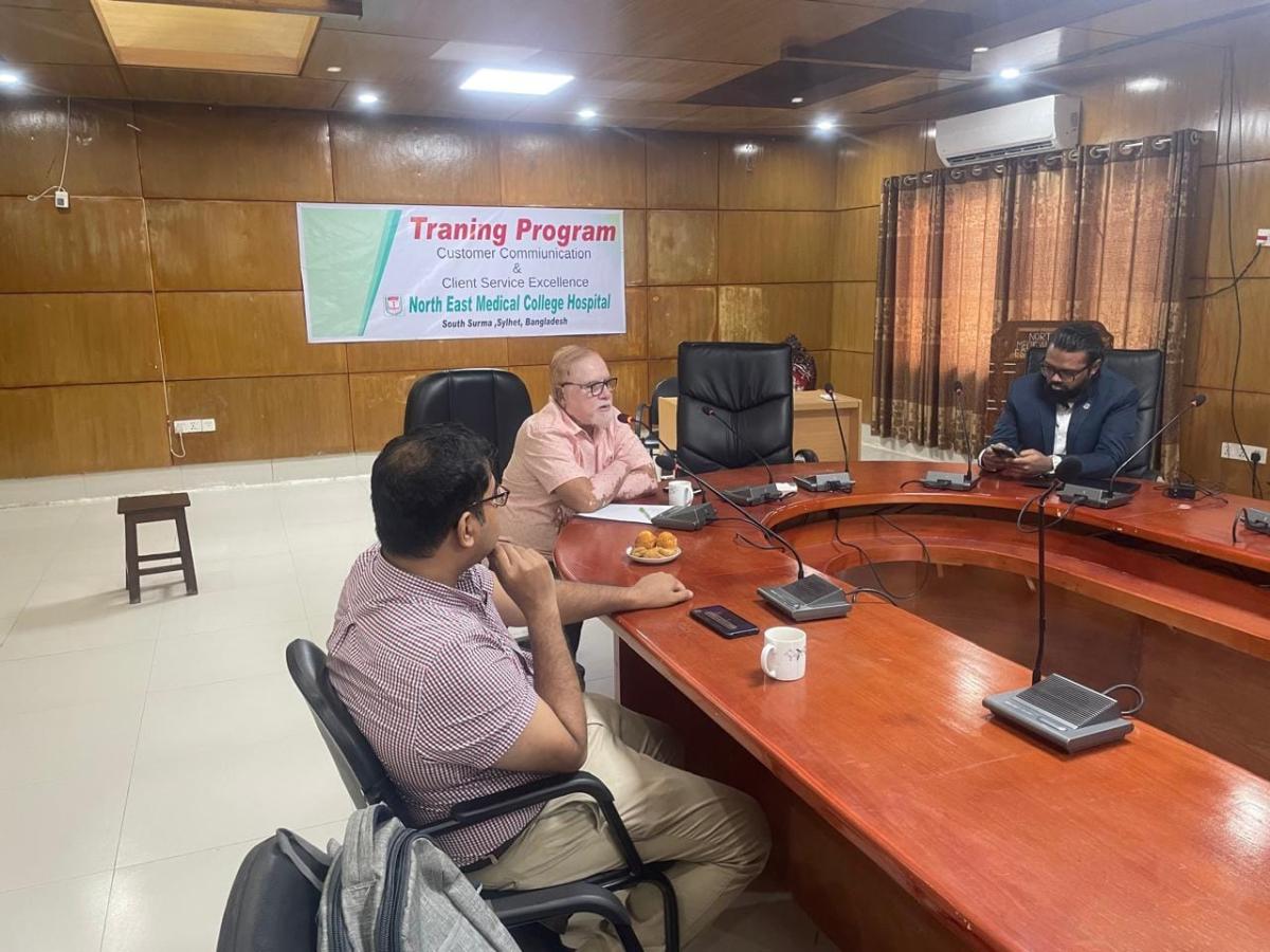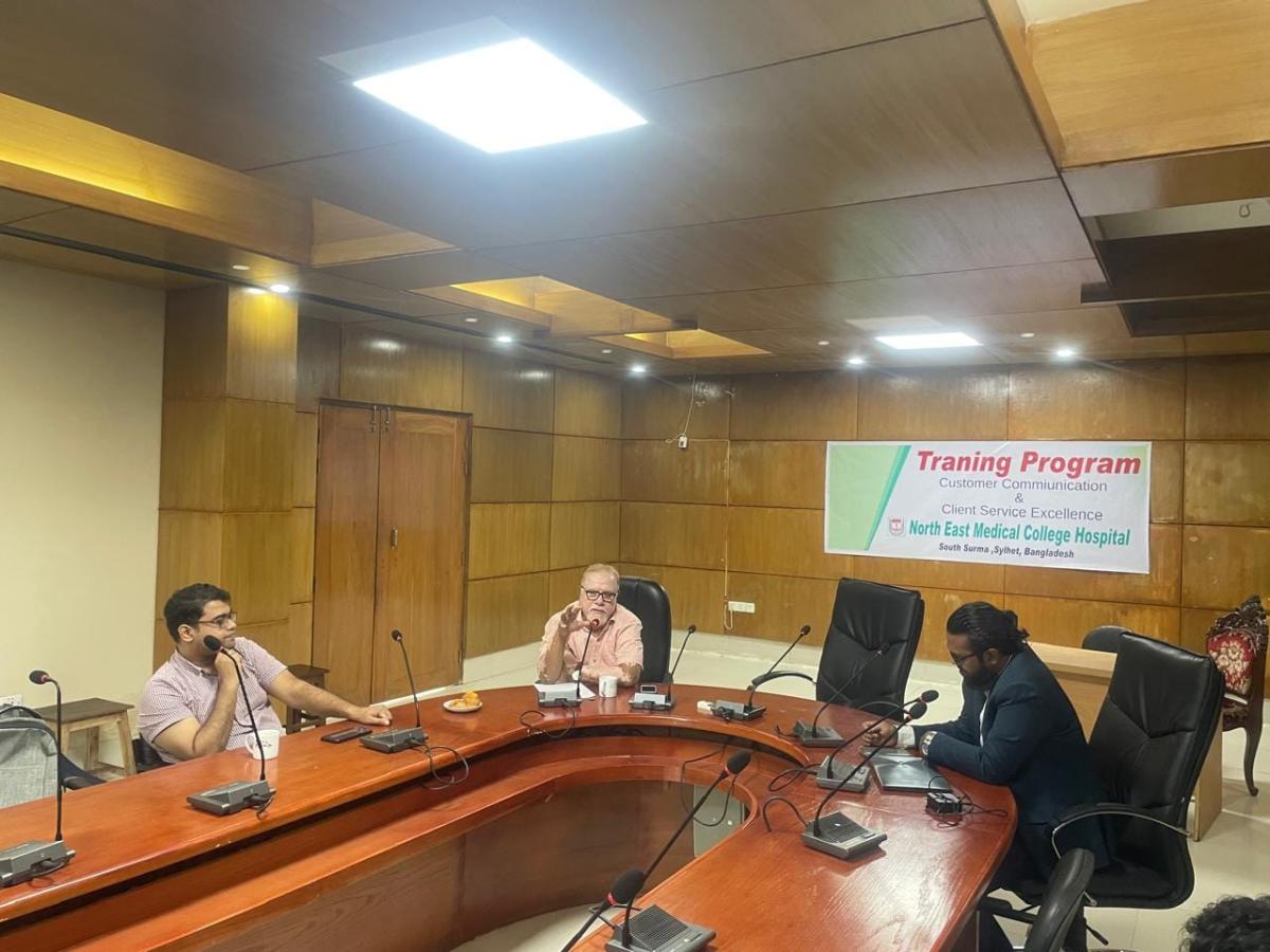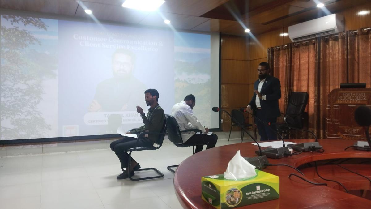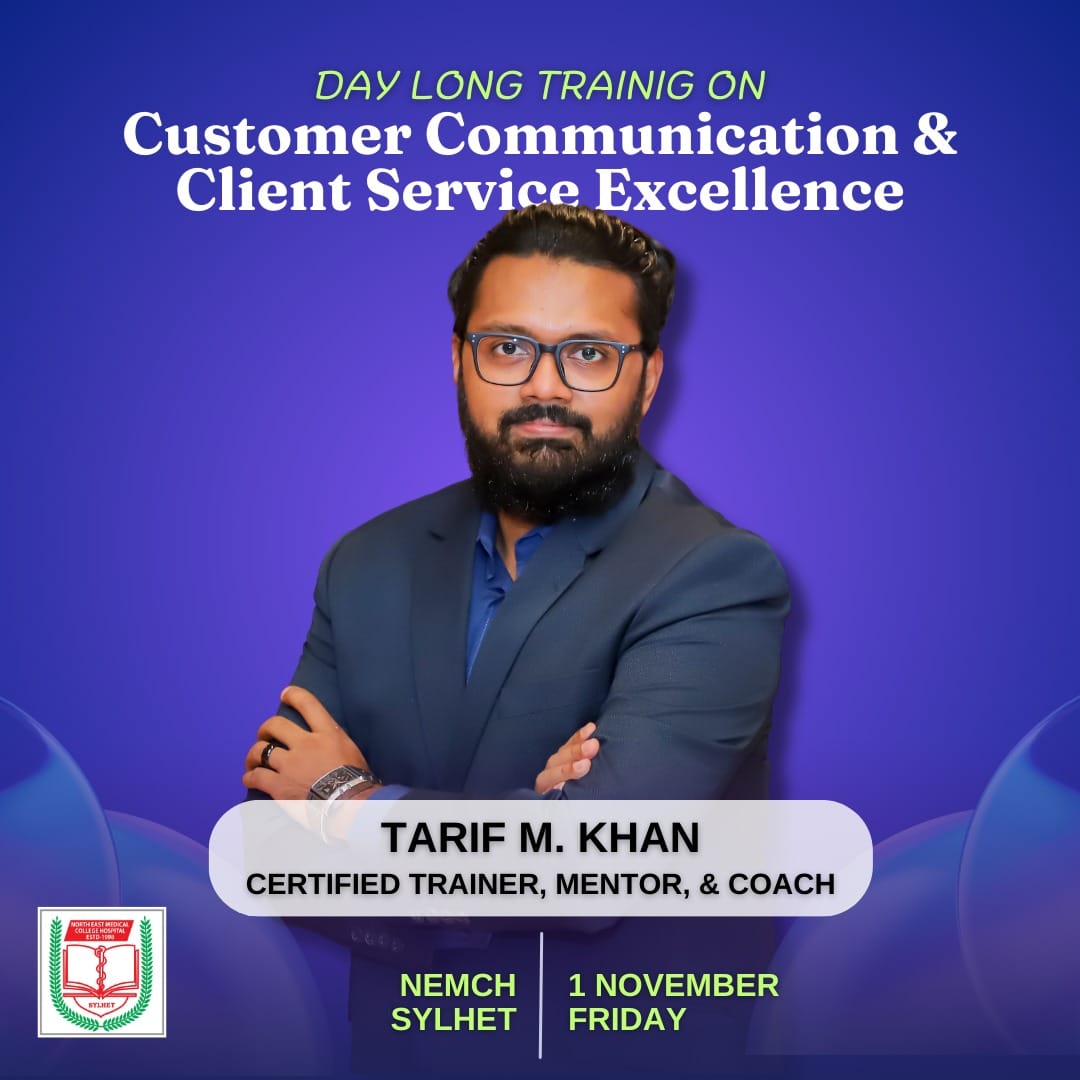 North East Medical College & Hospital (NEMCH) hosted a comprehensive day-long training session on Customer Communication and Client Service Excellence. The event, led by certified trainer, mentor, and coach Tarif M. Khan, aimed to enhance the communication and service skills of healthcare professionals, ultimately improving patient experience and satisfaction.