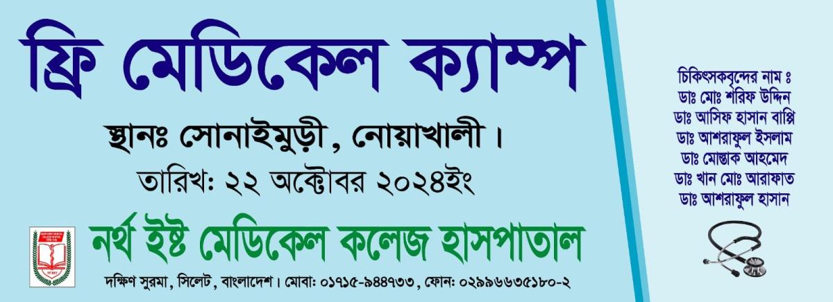 Free Medical Camp 22.10.2024 Posted by saheli_2018 Categories Free Medical Camp, News, recent Date October 21, 2024 Comments 0 comment 462920689_575095381538576_7545880348526735915_n saheli_2018 Previous post প্রতিকূল পরিবেশে বৈষম্য বিরোধী আন্দোলনে আহতদের চিকিৎসা সেবায় বিশেষ অবদানের জন্য নর্থ ইষ্ট মেডিকেল কলেজ হাসপাতালের সম্মাননা স্বারক গ্রহন । October 21, 2024 Next post নর্থ ইষ্ট মেডিকেল কলেজ হাসপাতালের উদ্যোগে নোয়াখালী সোনাইমুরি উপজেলায় প্রায় ৬৫০ জন রোগীকে ঔষধ সহ বিনামুল্যে চিকিৎসা প্রদান । October 23, 2024 You may also like “Aspects of Bone Marrow Transplant in Bangladesh: Present and Future” 5 November, 2024 DAY-LONG TRAINING ON CUSTOMER COMMUNICATION & CLIENT SERVICE EXCELLENCE. 2 November, 2024 নর্থ ইষ্ট মেডিকেল কলেজ হাসপাতালের সেচ্ছাসেবী রক্তদাতা সংগঠন *জীবন* এর ভ্যক্সিনেশন প্রোগ্রাম। 30 October, 2024