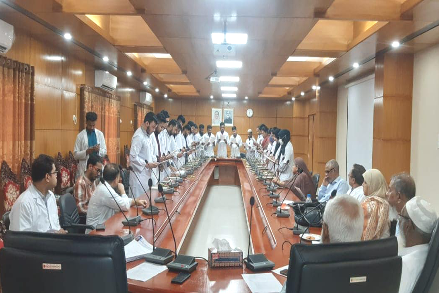 অদ্য ২৬/০৪/২০২৩ ইং রোজ বুধবার সকাল ১১:০০ টায় নর্থ ইষ্ট মেডিকেল কলেজ এক্সটেনশন বিল্ডিং এর কনফারেন্স হলে নতুন ইন্টার্নদের Induction Program অনুষ্ঠিত হয়। অনুষ্ঠান পরিচালনা করেন ডাঃ তাহের উদ্দিন, রেজিস্ট্রার, মেডিসিন। অনুষ্ঠানের সভাপতি ছিলেন নর্থ ইষ্ট মেডিকেল কলেজ হাসপাতালের সম্মানিত পরিচালক ও নর্থ ইষ্ট মেডিকেল কলেজের গভর্নিং বডির চেয়ারম্যান অধ্যাপক ডাঃ মোহাম্মদ আফজল মিয়া। আরো উপস্থিত ছিলেন নর্থ ইষ্ট মেডিকেল কলেজ এর অধ্যক্ষ ও ব্যাবস্থাপনা পরিচালক অধ্যাপক ডাঃ শাহরিয়ার হোসেন চৌধুরী, নর্থ ইষ্ট মেডিকেল প্রাঃ লিঃ এর চেয়ারম্যান অধ্যাপক ডাঃ সৈয়দ মূসা এম এ কাইয়ুম, অধ্যাপক ডাঃ এ এফ এম নাজমুল ইসলাম( উপাধ্যক্ষ, নর্থ ইষ্ট মেডিকেল কলেজ হাসপাতাল ) অধ্যাপক ডাঃ মোঃ নাজমুল ইসলাম, অধ্যাপক ডাঃ নাহিদ ইলোরা, অধ্যাপক ডাঃ সাব্বির হোসেন,ডাঃ জসিম উদ্দিন ( উপ- পরিচালক ), ডাঃ মুনতাসীর আলম রাহিমী ( সহকারি পরিচালক ), ডা: মোহাম্মদ আখতারুজ্জামান।