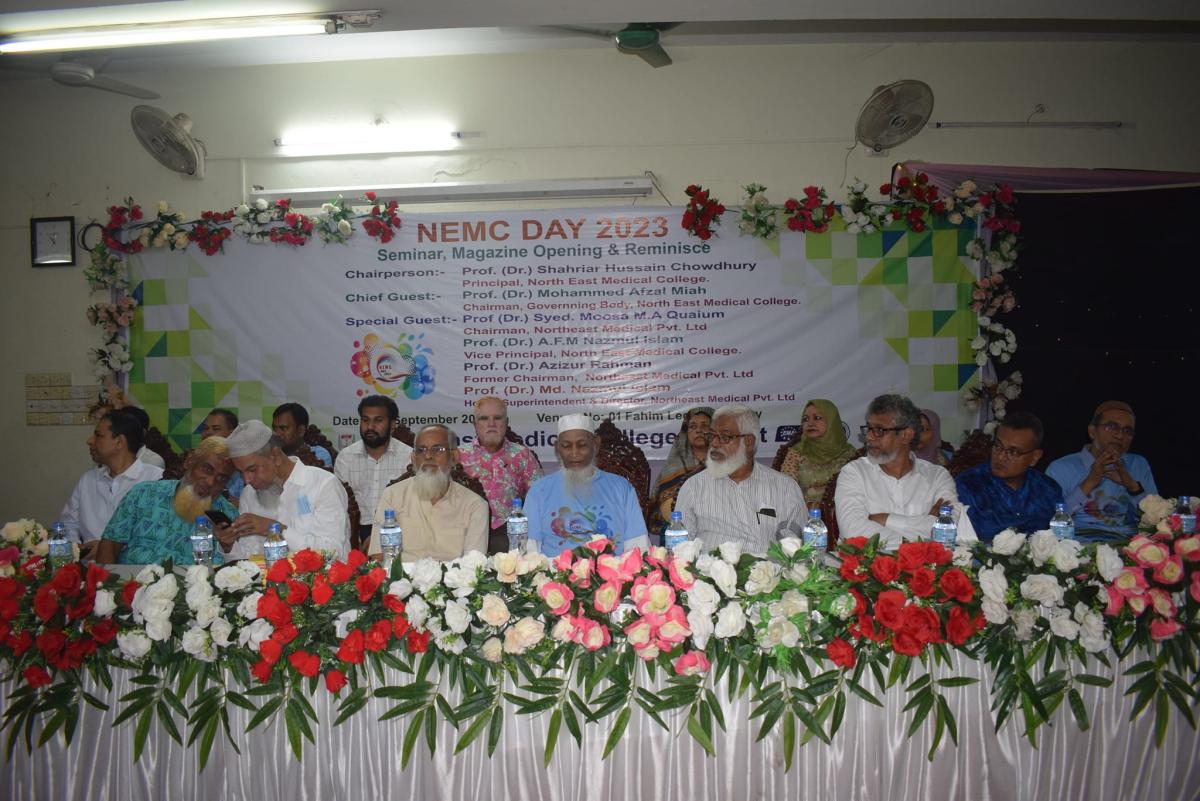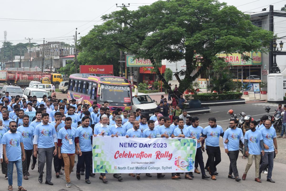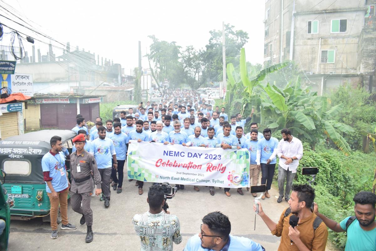 দিনব্যাপী ঝাঁকজমকপূর্ণ অনুষ্টানের মধ্য দিয়ে শনিবার (২ সেপ্টেম্বর) পালিত হয়েছে সিলেটের ঐতিহ্যবাহী প্রতিষ্টান নর্থ ইষ্ট মেডিকেল কলেজ ডে ২০২৩। প্রথমবারের মত দিনটি উপলক্ষে র্যালী, সেমিনারসহ বিভিন্ন রকম অনুষ্টানের আয়োজন করে কলেজটি। সকাল সাড়ে নয়টায় কেক কেটে এবং পায়রা উড়িয়ে অনুষ্টানের উদ্ভোধন করেন নর্থ ইষ্ট মেডিকেল কলেজ গভর্নিং বডির চেয়ারম্যান প্রফেসর ডাক্তার মোহাম্মদ আফজাল মিয়া, কলেজের প্রিন্সিপাল ও ব্যবস্থাপনা পরিচালক প্রফেসর ডাক্তার শাহরিয়ার হোসেন চৌধুরী, ভাইস প্রিন্সিপাল প্রফেসর ডাক্তার এ এফ এম নাজমুল ইসলাম, ডাক্তার মোঃ নাজমুল ইসলামসহ অতিথিবৃন্দ।