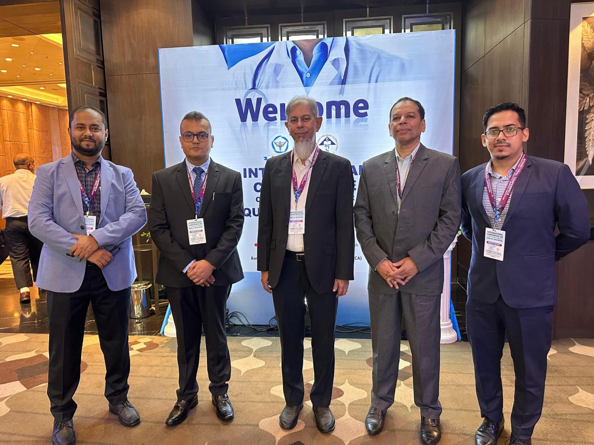 A team of distinguished faculty members, led by Vice Principal and Head of Dept. Of Medicine Prof. Dr. A.F.M Nazmul Islam along with Prof. Dr. Md. Nazmul Islam (Head of Dept. Of Nephrology), Prof. Dr. Alamgir Adil Samdany (Head of Dept. Of Orthopaedics), Prof. Dr. Avijit Das (Head of Dept. Of Microbiology), Dr. Fuad Reajwan Kabir (Associate Professor, Dental Anatomy), and Dr. Chowdhury Mohammed Tawhid Tasneef (Senior Lecturer, Dept. Of Forensic Medicine); recently attended the prestigious International Conference on Accreditation for Quality Medical Education at Hotel Intercontinental, Dhaka.