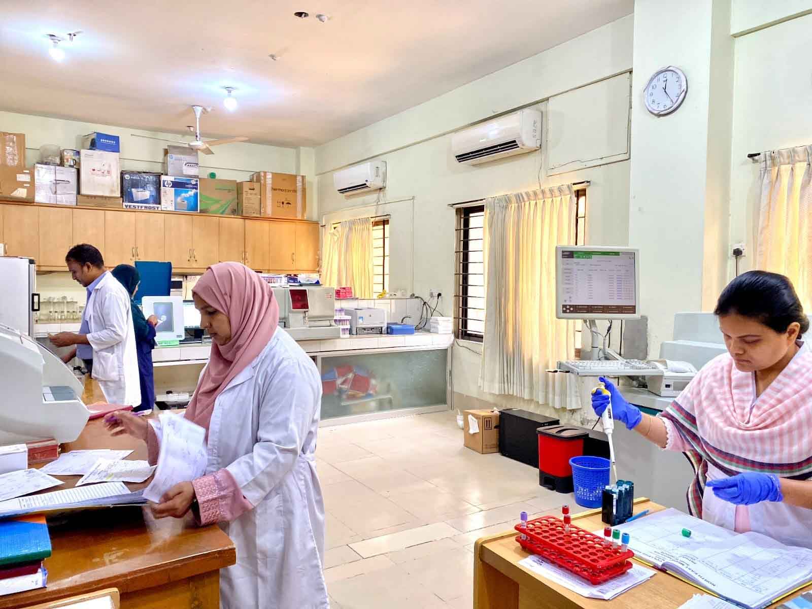 The Department of Pathology of NEMCH is located at the 3rd floor of the Academic building. The Department has a well equipped Pathology practical room, a museum and tutorial rooms. A modern laboratory situated on the first floor of the hospital building. As per new rule (updated 2021) of BMDC, study of pathology will start in 2nd phase, the comprehensive course will continue for two years with 100 hours lecture classes, 100 hours tutorial and 28 hours practical classes. The total teaching hours are 228 hours The course will be evaluated by the 3rd professional examination.