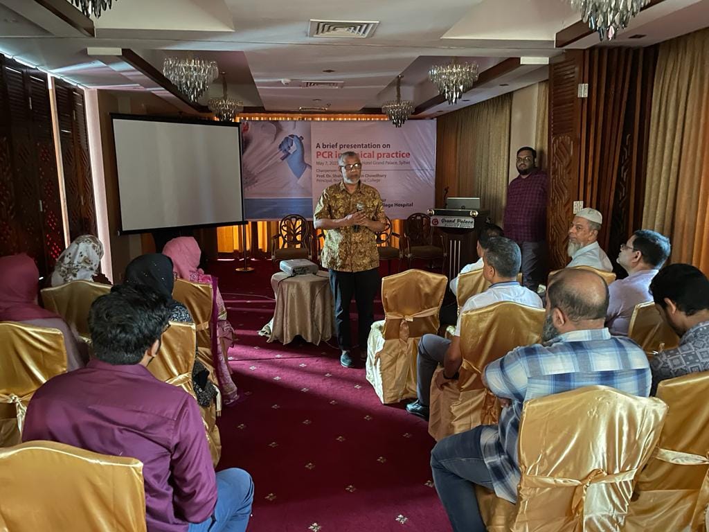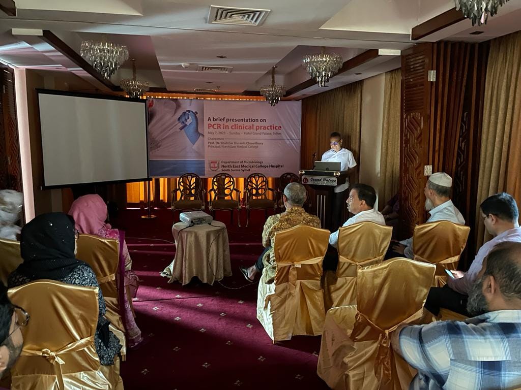 আজ ৭/৫/২০২৩, রবিবার, দুপুর ২টায় হোটেল গ্র‌্যান্ড প‌্যা‌লে‌স সিলেট-এ নর্থ ইষ্ট মে‌ডি‌কেল ক‌লেজ হাসপাতা‌লের মাইক্রোবা‌য়োল‌জি বিভা‌গের উদ্যো‌গে PCR In Clinical Practice বিষয়ে এক সেমিনার আয়োজন করা হয়। মাইক্রোবা‌য়োল‌জি বিভা‌গের প্রভাষক ডা. মিথুন কা‌ন্তি দাস-এর সঞ্চালনায় উক্ত সেমিনারে সভাপ‌তিত্ব ক‌রেন নর্থ ইষ্ট মেডিকেল কলেজের অধ্যক্ষ ও নর্থ ইষ্ট ‌মে‌ডি‌কেল প্রাইভেট লিমিটেডের ব্যবস্থাপনা পরিচালক অধ্যাপক ডা. শাহরিয়ার হোসেন চৌধুরী। বিশেষ অতিথি হিসেবে ছিলেন উপাধ‌্যক্ষ অধ্যাপক ডা. এ এফ এম নাজমুল ইসলাম, নে‌ফ্রোল‌জি বিভা‌গের প্রধান অধ্যাপক ডা. নাজমুল ইসলাম, প্রসূ‌তি ও স্ত্রী‌রোগ বিভা‌গের প্রধান অধ্যাপক ডা. নাহিদ ইলোরা। স্বাগত বক্তব‌্য উপস্থাপন করেন মাইক্রোবা‌য়োল‌জি বিভা‌গের প্রধান অধ‌্যাপক ডা. অ‌ভি‌জিৎ দাস এবং মূল প্রবন্ধ পেশ ক‌রেন বিভা‌গের সহ‌যোগী অধ‌্যাপক ডা. ফাহমী ইকবাল রাব্বী। অ‌তি‌থি হি‌সে‌বে উপ‌স্থিত ছি‌লেন প‌্যাথল‌জি বিভা‌গের প্রধান অধ্যাপক ডা. সূচনা নাজরীন, এমএজি ওসমানী মে‌ডি‌কেল ক‌লেজ হাসপাতা‌লের মে‌ডি‌সিন বিভা‌গের সহকারী অধ‌্যাপক ডা. মেসবাহ উদ্দিন, জালালাবাদ রাগীব রা‌বেয়া মে‌ডি‌কেল ক‌লেজ হাসপাতা‌লের মে‌ডি‌সিন বিভা‌গের সহ‌যোগী অধ‌্যাপক ডা. গোলাম রব মাহমুদ, সহকারী অধ্যাপক ডা. এম এ আউয়াল আসিক, নর্থ ইষ্ট মে‌ডি‌কেল ক‌লেজ হাসপাতা‌লের সহকারী প‌রিচালক ডা. মুনতা‌সির আলম রা‌হিমীসহ অরো অন্যান্য চি‌কিৎসকবৃন্দ। অধ্যাপক ডা. শাহরিয়ার হোসেন চৌধুরী তাঁর বক্তব্যে বলেন- সাধারণ মানুষের দোরগোড়ায় চিকিৎসাসেবা পৌঁছে দেয়াই নর্থ ইষ্ট মে‌ডি‌কেল ক‌লেজ হাসপাতা‌লের উদ্দেশ‌্য। সেই ল‌ক্ষ্যেই হাসপাতা‌লের মাইক্রোবা‌য়োল‌জি বিভা‌গে পি‌সিআর ল‌্যাব স্থা‌পিত হ‌য়ে‌ছে। ল‌্যা‌বে বর্তমা‌নে সাশ্রয়ী মূ‌ল্যে হেপাটাইটিস‌ বি, সি এবং হিউম‌্যান প‌্যা‌পি‌লোমা ভাইরা‌সের জি‌নোম পরীক্ষা করা হ‌চ্ছে এবং ২৪ঘন্টার ম‌ধ্যেই রি‌পোর্ট প্রদান করা হ‌চ্ছে। এর মাধ‌্যমে রোগীরা উপকৃত হ‌বেন ব‌লে তি‌নি আশাবাদ ব‌্যক্ত ক‌রেন।