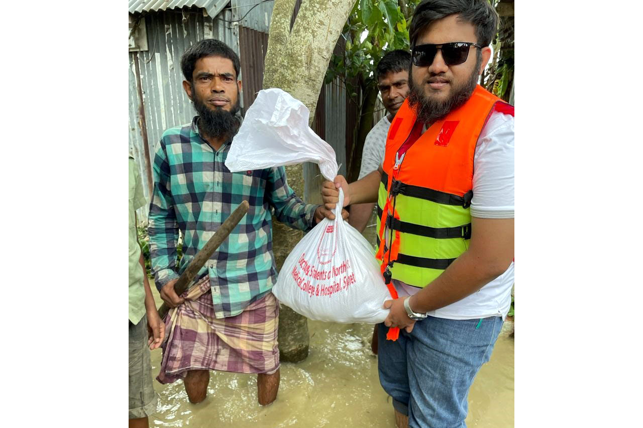 Relief Distribution by Doctors & Students of North East Medical College & Hospital affected area of Derai Upazila ,Sunamganj on 28.06.2022