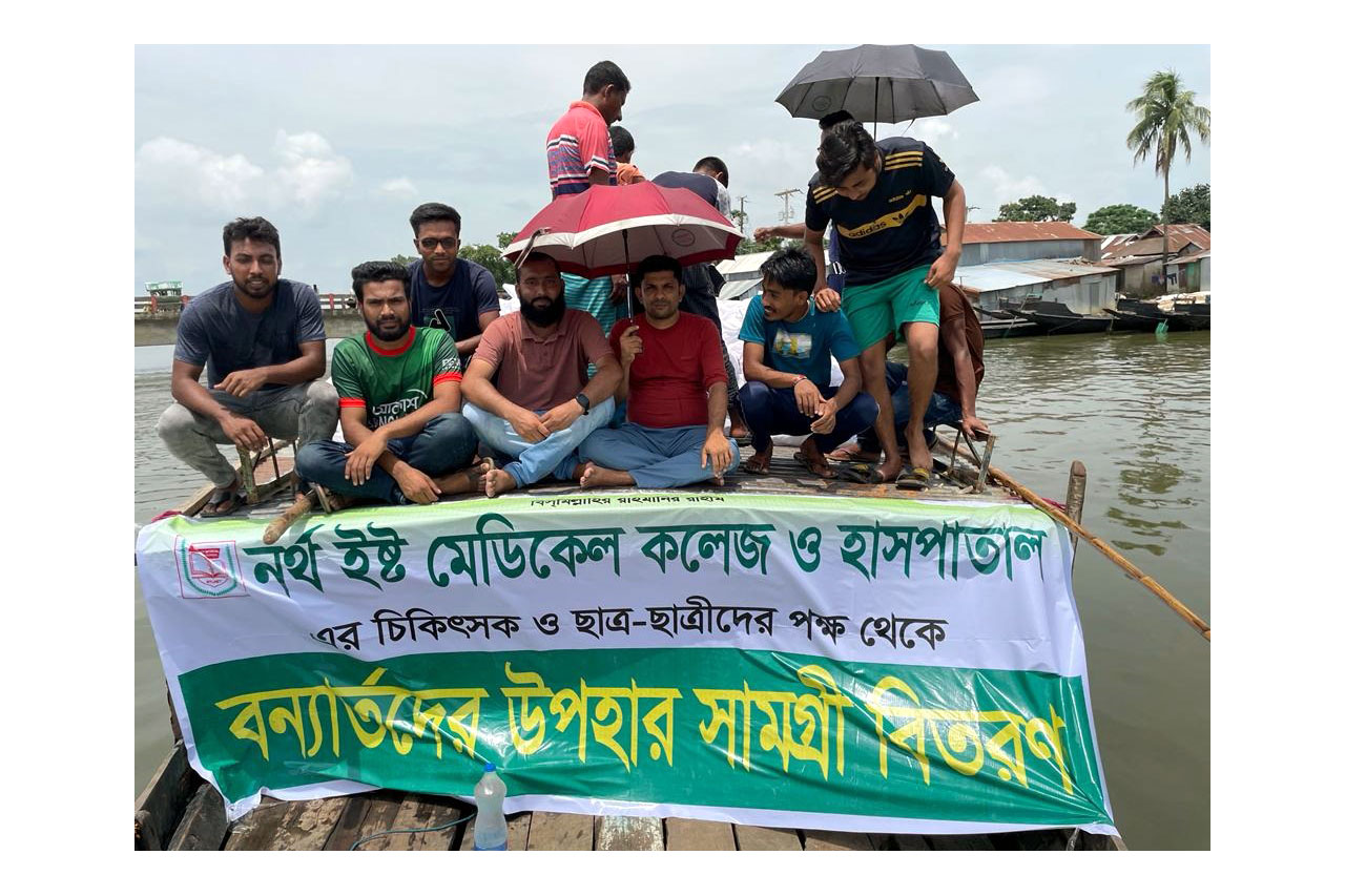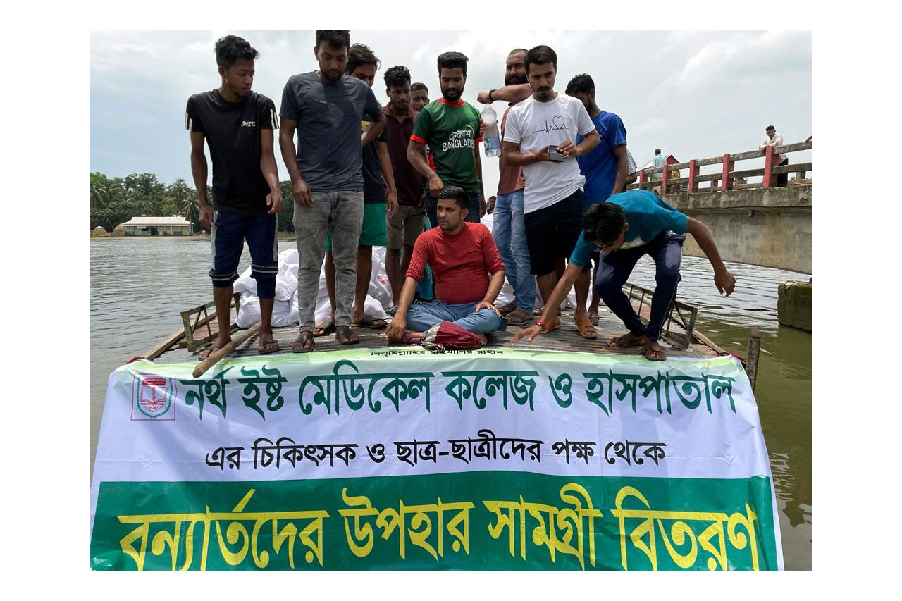 নর্থ ইষ্ট মেডিকেল কলেজ ও হাসপাতাল কর্তৃপক্ষ চলমান ত্রান ও খাদ্য বিতরন ৩ জুলাই ২০২২ইং