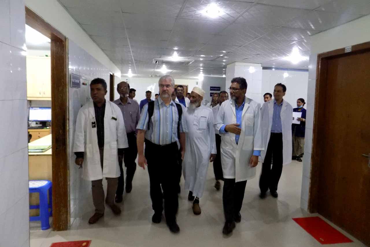 Oxford Policy Management (OPM)is working with a team of national and international experts to prepare the terms of reference for a technical assistance mission aiming at improving the structure, regulatory framework, and quality of medical education offered to train health care professionals at different (graduate and diploma) levels.The core objective of the study is to provide a concept and recommendations to the MOHFW and DFID on the scope and content of a Technical Assistance mission that in the framework of the Fourth Health, Population and Nutrition Sector Programme (HPNSP 2017-2022) to assist the Government of Bangladesh with the design and implementation of a comprehensive reform of the medical education system considering needs and demands expressed by all stakeholders, as well as international standards, global trends in medical education, and health system requirements.Both of the distinguished guests have discussed various topics regarding quality of medical education in Bangladesh with the authority and faculty members of NEMCH. After that, they visited some Basic and Clinical departments of North East Medial College and Hospital.